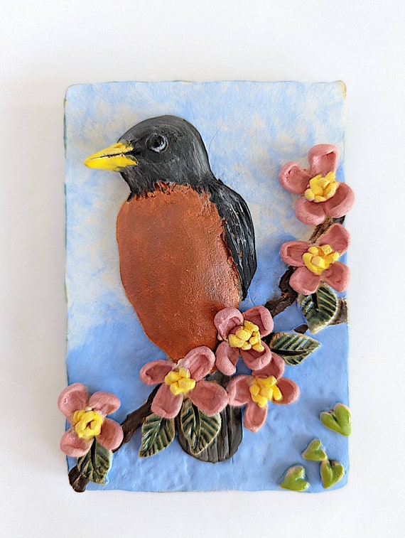 Small Robin Bird Ceramic Art Nature Whimsical Clay Wall Art Etsy